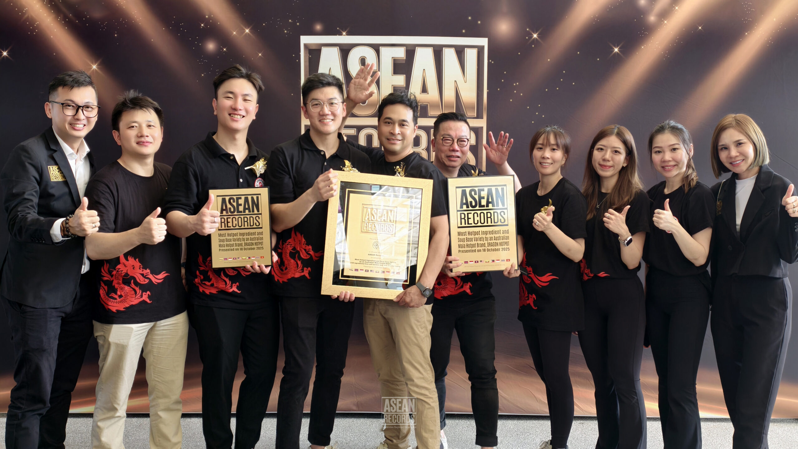 Dragon Hotpot, the Australian-founded hotpot sensation known for its authentic Sichuan-style mala experience, has officially been recognised by ASEAN Records for achieving the milestone: Most Hotpot Ingredient and Soup Base Variety by an Australian Mala Hotpot Brand (162 ingredients from self-service rack and 10 soup bases)