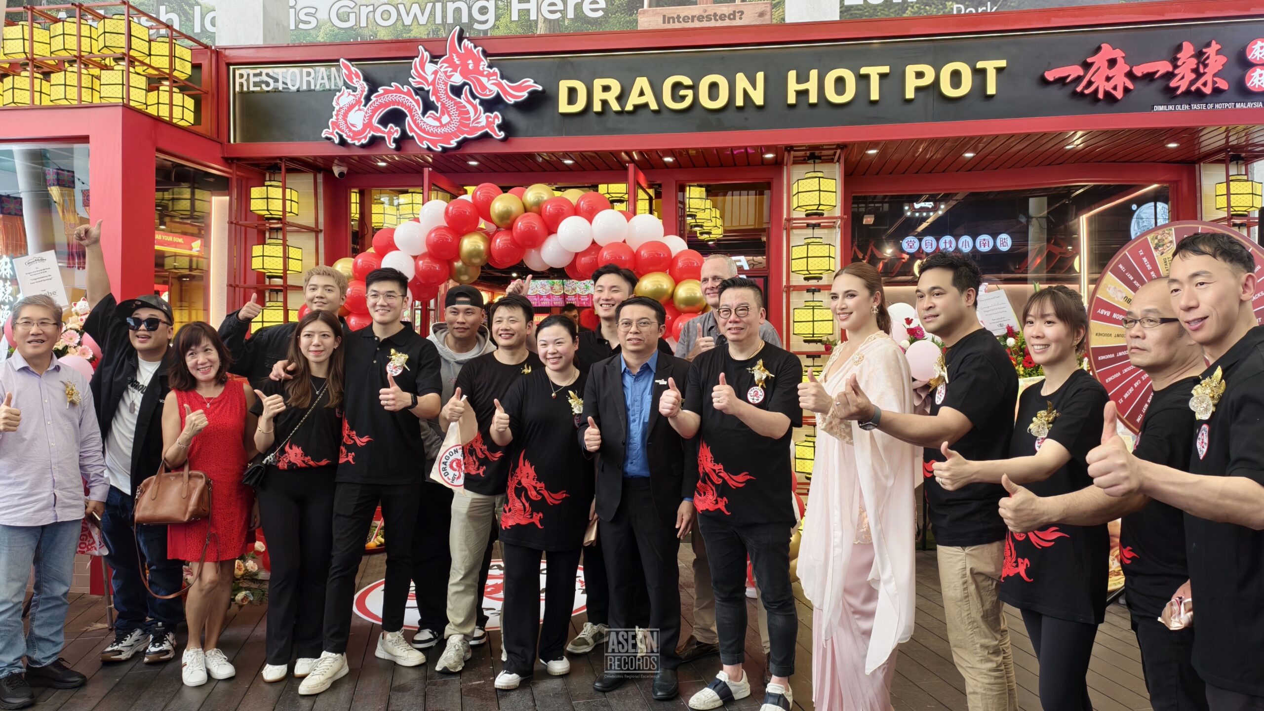 This official ASEAN Records was proudly presented to Jeremy Chia and De Jie Hau, Master Franchisees for Malaysia, along with David Loh and Louis Kuo, Brand Founders of Dragon Hotpot. The presentation took place at Dragon Hotpot’s flagship location in Low Yat Park, Bukit Bintang, where the brand’s signature self-service rack and customisable soup base system were on full display.
