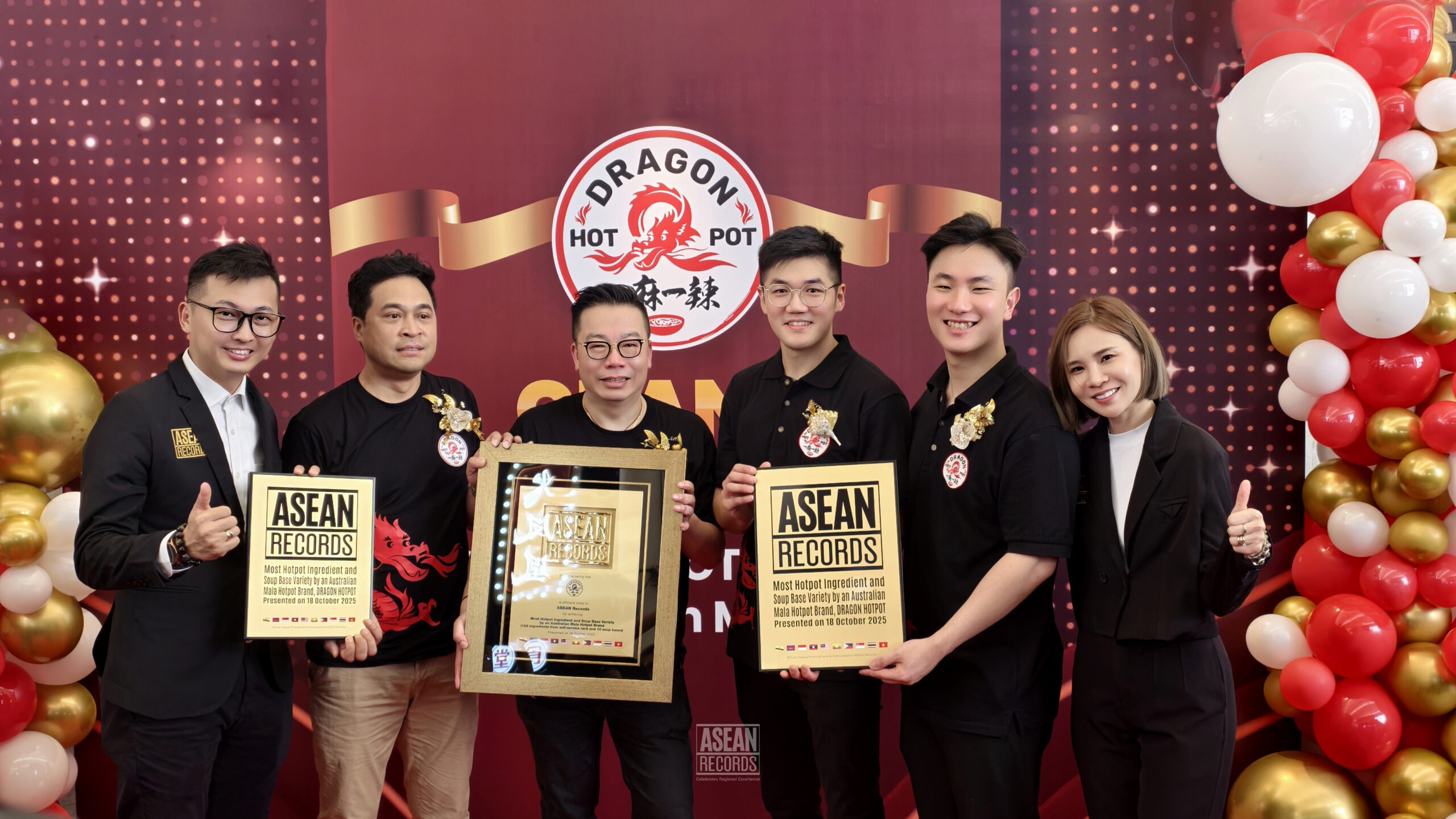 Dragon Hotpot, the Australian-founded hotpot sensation known for its authentic Sichuan-style mala experience, has officially been recognised by ASEAN Records for achieving the milestone: Most Hotpot Ingredient and Soup Base Variety by an Australian Mala Hotpot Brand (162 ingredients from self-service rack and 10 soup bases)